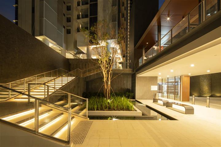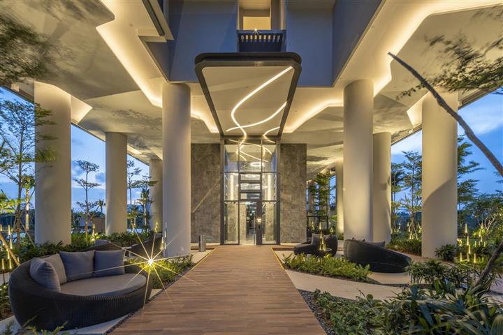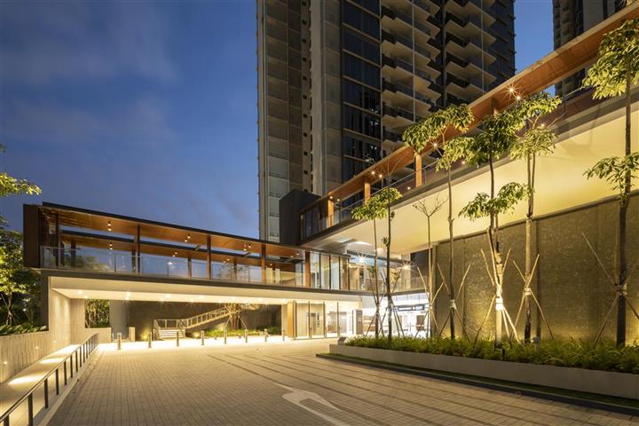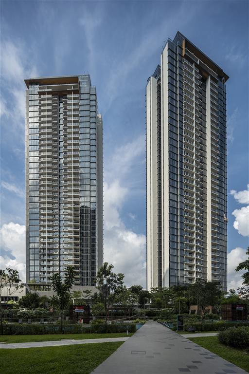 The 520-unit development is a pair of elegant glass tower perched atop an elevated terrain. High volume lobbies are created to offer optimum spaces for landscaping and recreational facilities.